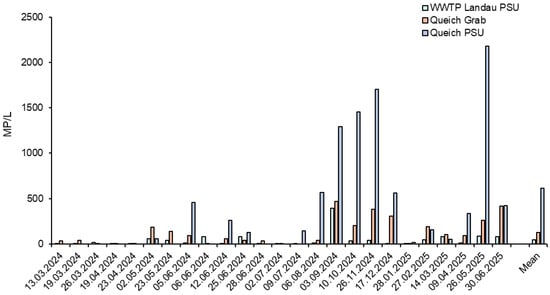 - Witzig, C.S.; Fiener, P.; König, M.; Zumbülte, N. Temporal Variability of Microplastic Concentrations in Inland Waters: An Automated, Semicontinuous Sampling of Microplastics ≥11 μm in a Stream in Southern Germany. ACS EST Water 2024, 4, 1443–1450. [Google Scholar] [CrossRef]