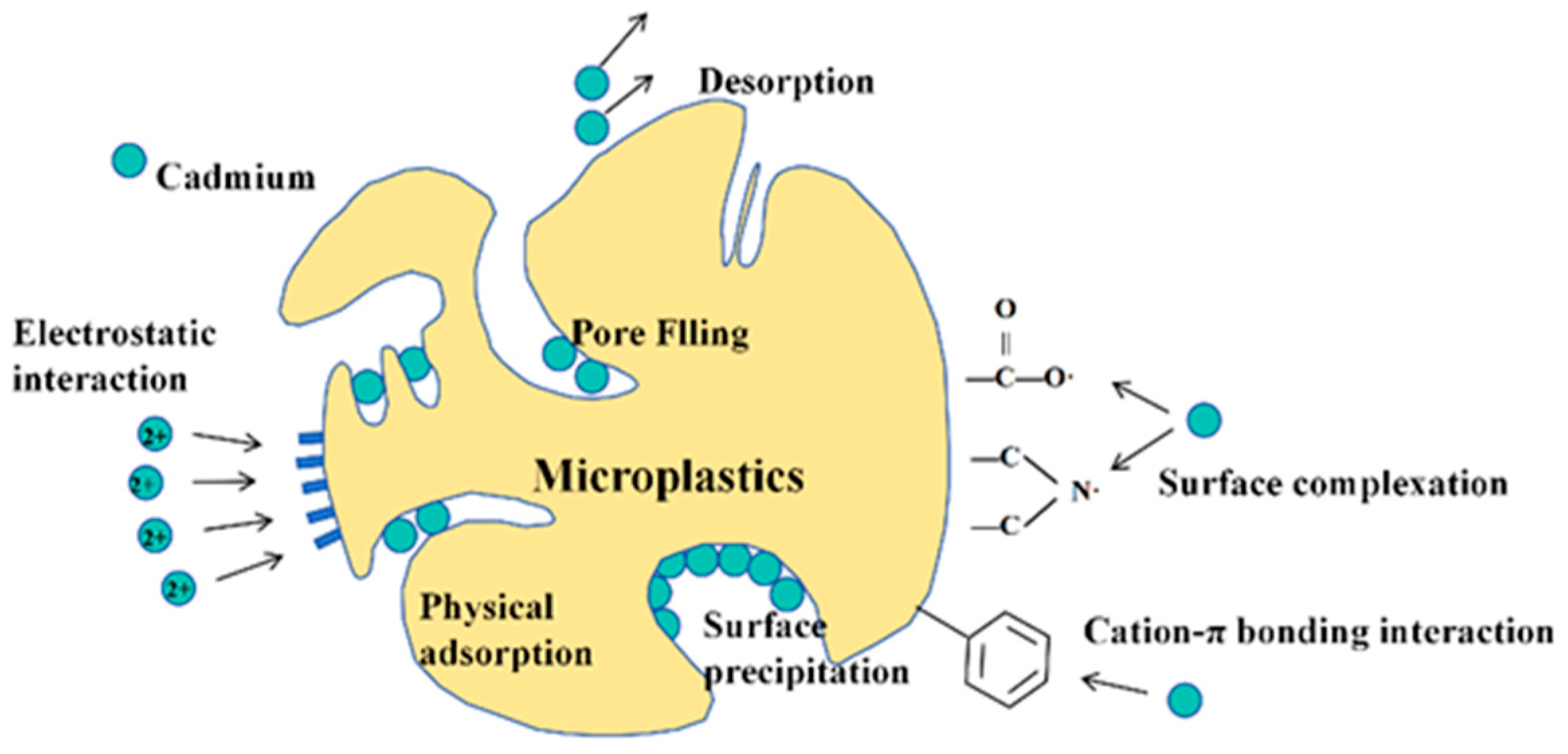 2.1. Types and Mechanisms of Cd Adsorption by MPs