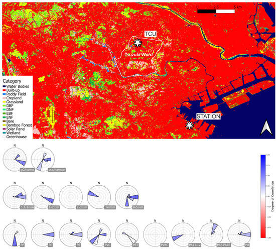 The study was conducted at the main entrance of the Tokyo City University Yokohama Campus (35°33′42.21″ N, 139°34′33.24″ E, elevation: 50 m), located in the Kohoku New Town area of Tsuzuki Ward, Yokohama City, Japan. This area occupies nearly half of the Tsuzuki Ward and is considered one of the wards with a high coverage of greenery in the city. The northern and central regions are primarily residential and commercial, whereas the southern part near the Tsurumi River is designated for agricultural and industrial use [37,38]. Meteorological data related were obtained from the Japan Meteorological Agency.