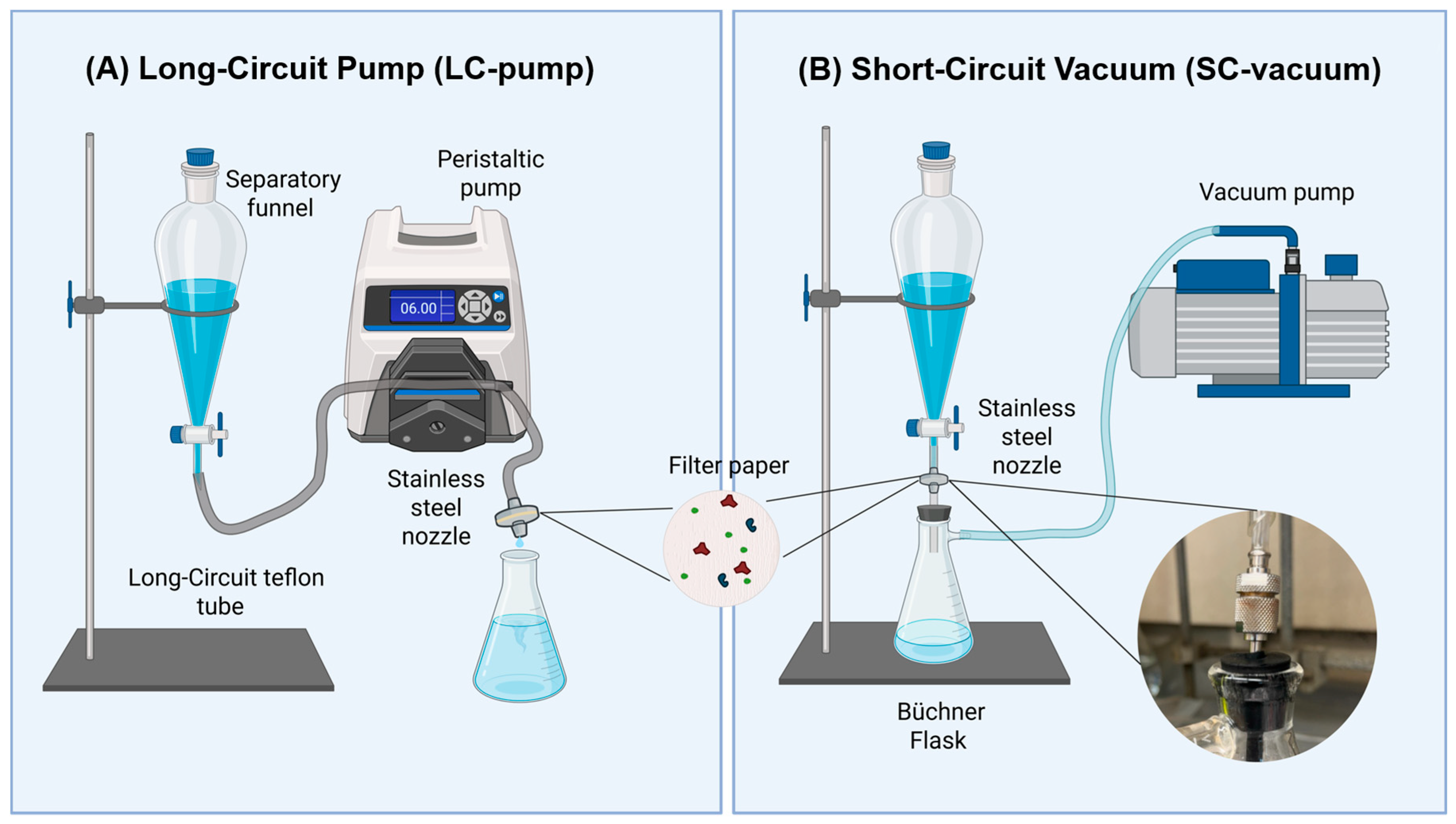 - Harrold, Z.; Arienzo, M.M.; Collins, M.; Davidson, J.M.; Bai, X.; Sukumaran, S.; Umek, J. A Peristaltic Pump and Filter-Based Method for Aqueous Microplastic Sampling and Analysis. ACS EST Water 2022, 2, 269–278. [Google Scholar] [CrossRef]