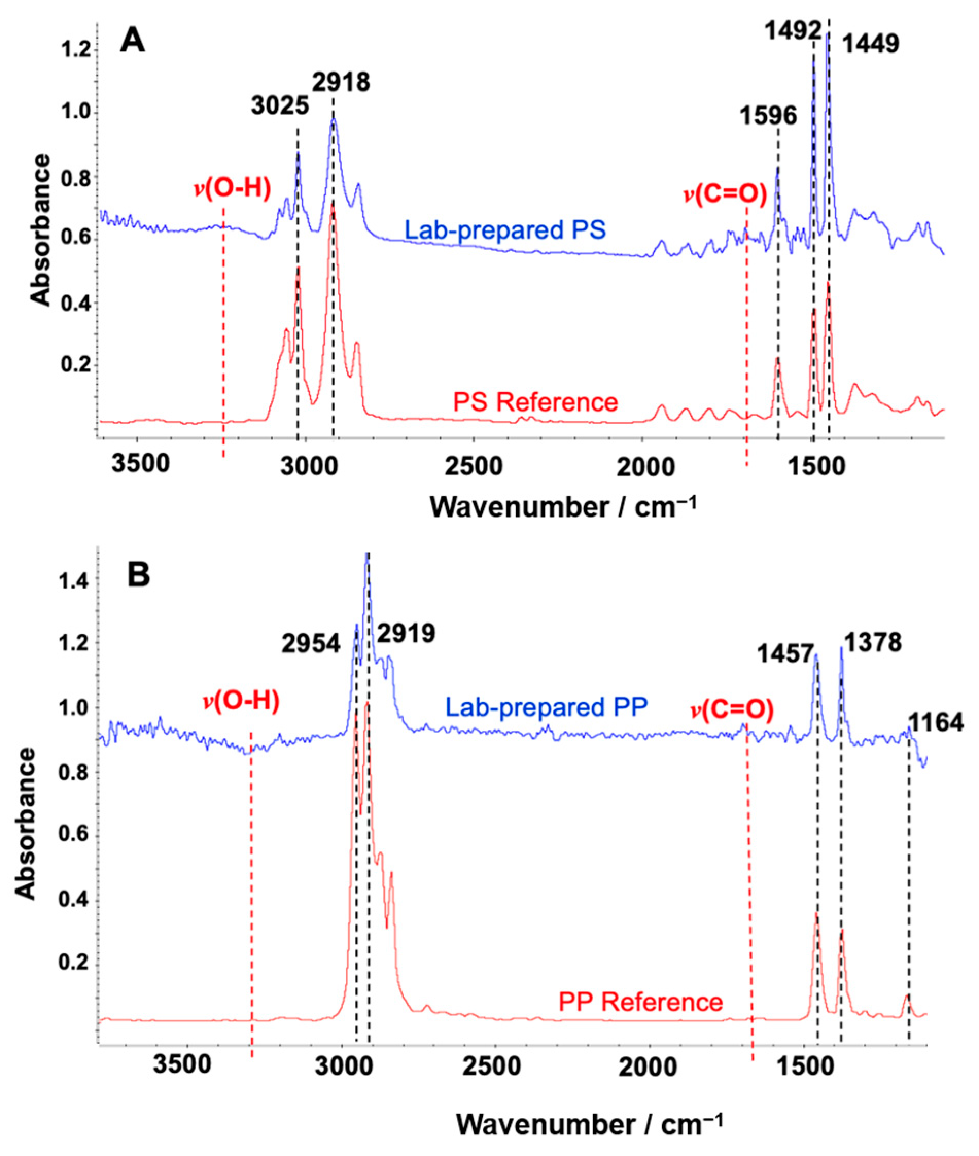 - Primpke, S.; Wirth, M.; Lorenz, C.; Gerdts, G. Reference Database Design for the Automated Analysis of Microplastic Samples Based on Fourier Transform Infrared (FTIR) Spectroscopy. Anal. Bioanal. Chem. 2018, 410, 5131–5141. [Google Scholar] [CrossRef] [PubMed]