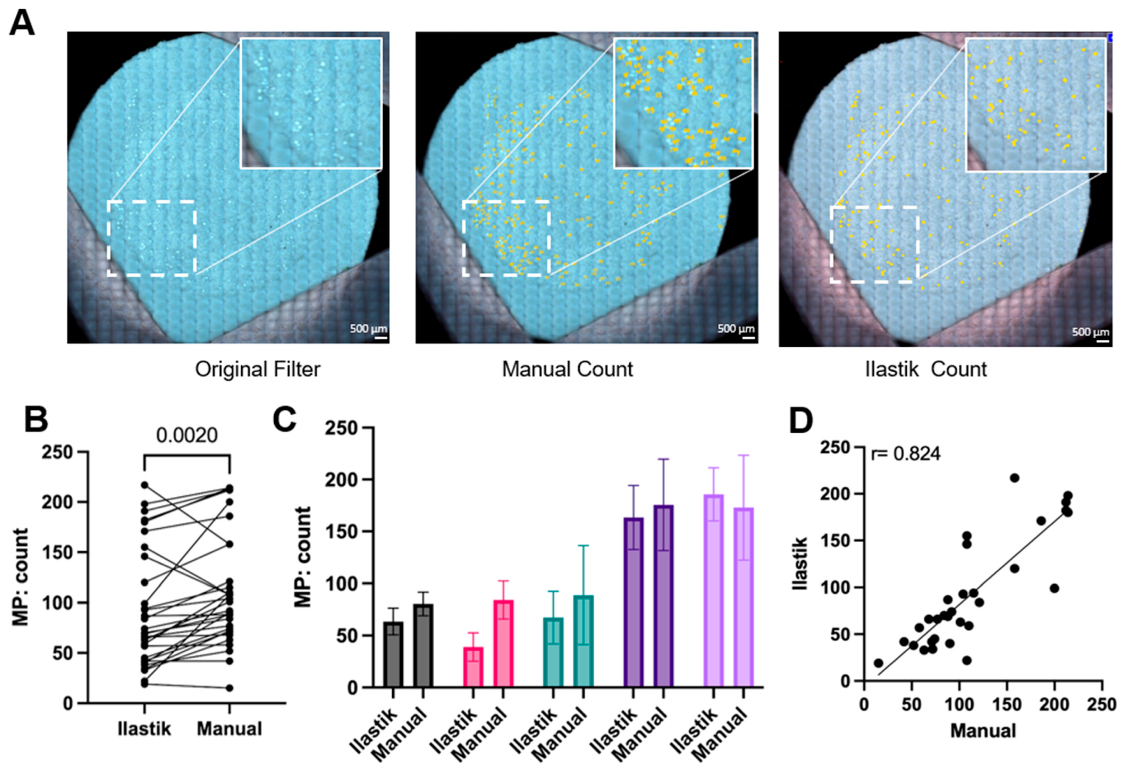 4.4. User-Guided Machine Learning Analysis and Quantification of MPs