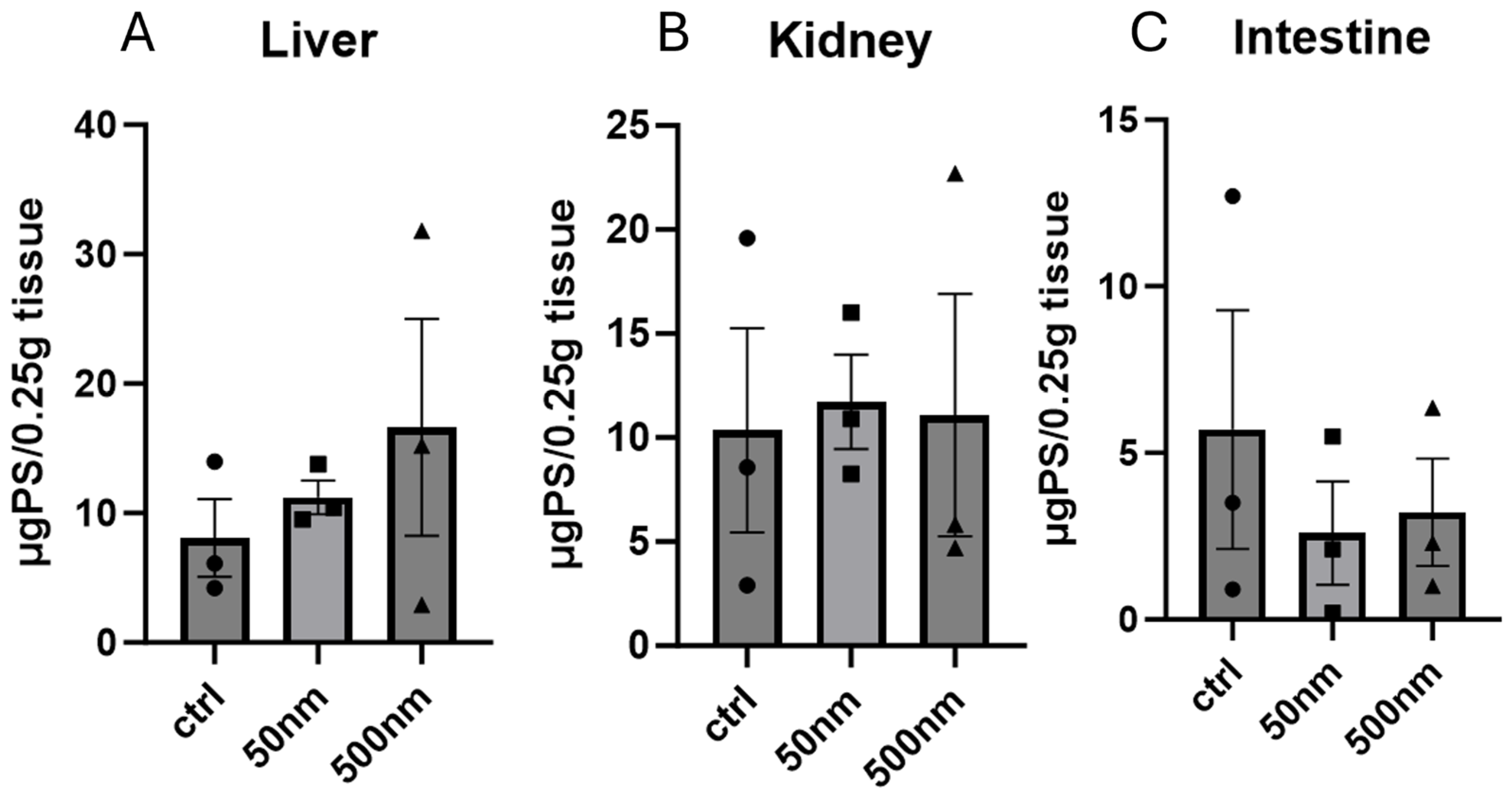 OrganMass PS-NPs Spiked (µg)PS-NPs Size (nm)Extraction MethodAnalysis by AF4-UV-DLSAnalysis by Py-GCMS