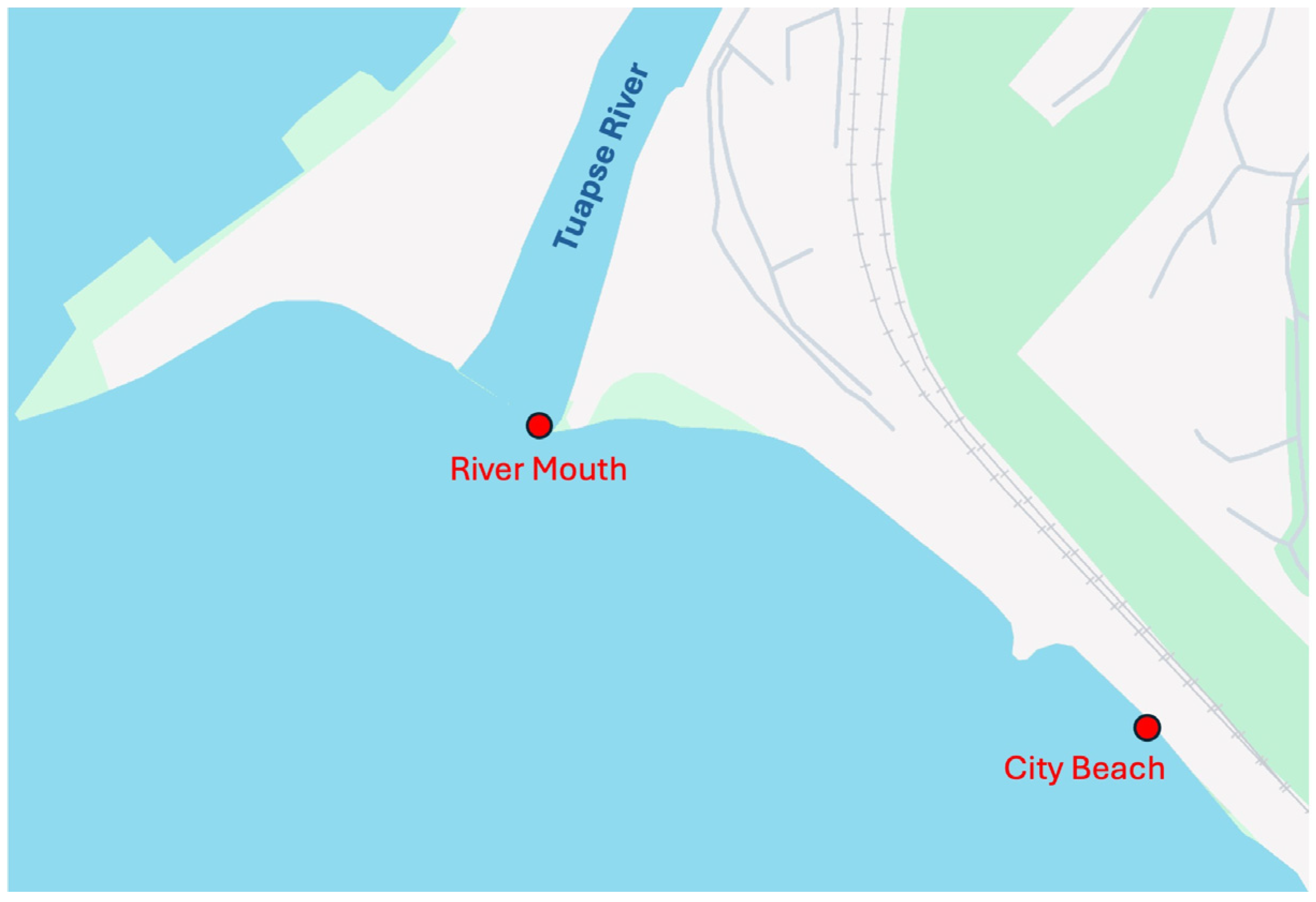 - Ferreira, M.; Thompson, J.; Paris, A.; Rohindra, D.; Rico, C. Presence of Microplastics in Water, Sediments and Fish Species in an Urban Coastal Environment of Fiji, a Pacific Small Island Developing State. Mar. Pollut. Bull. 2020, 153, 110991. [Google Scholar] [CrossRef]