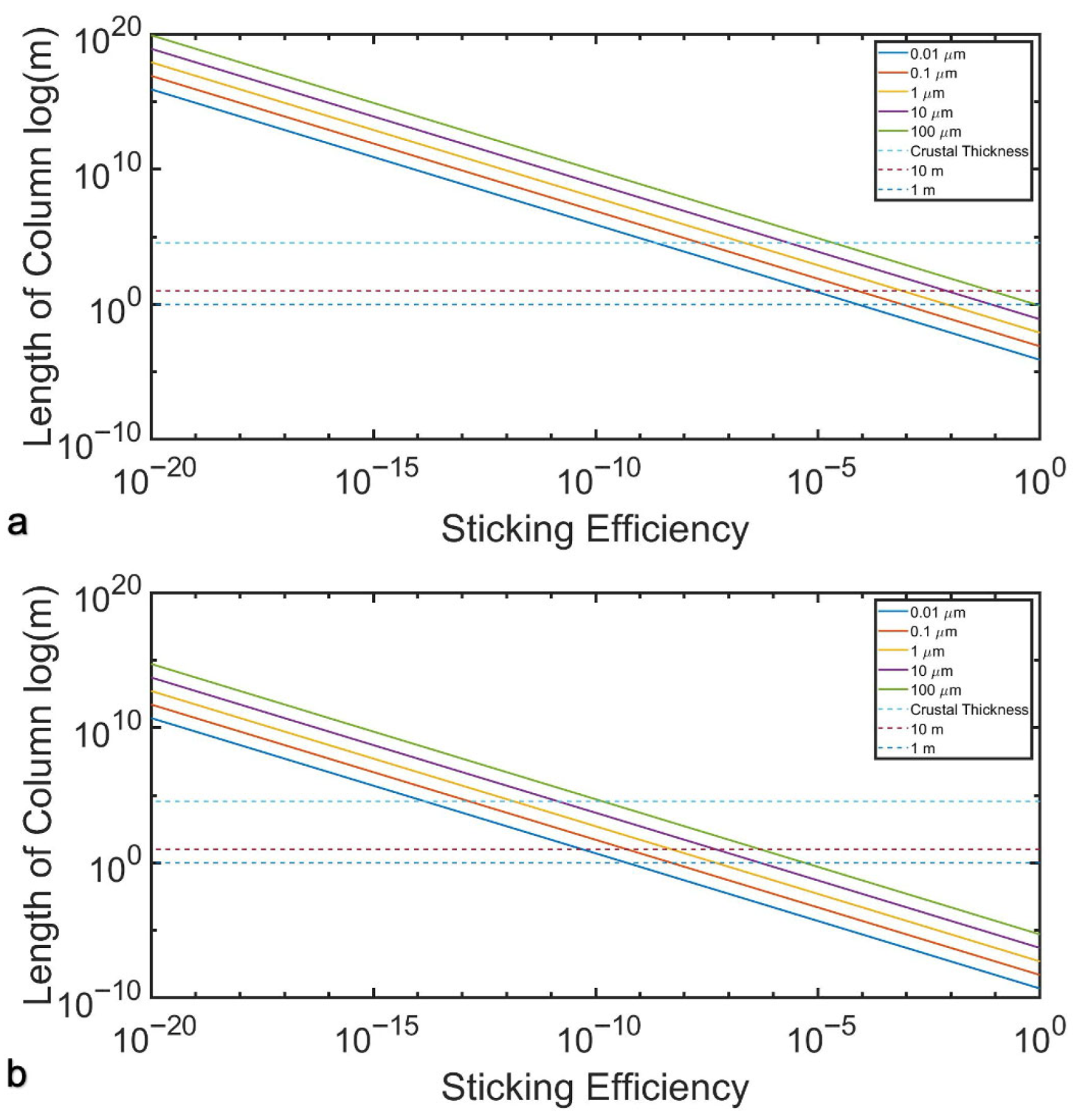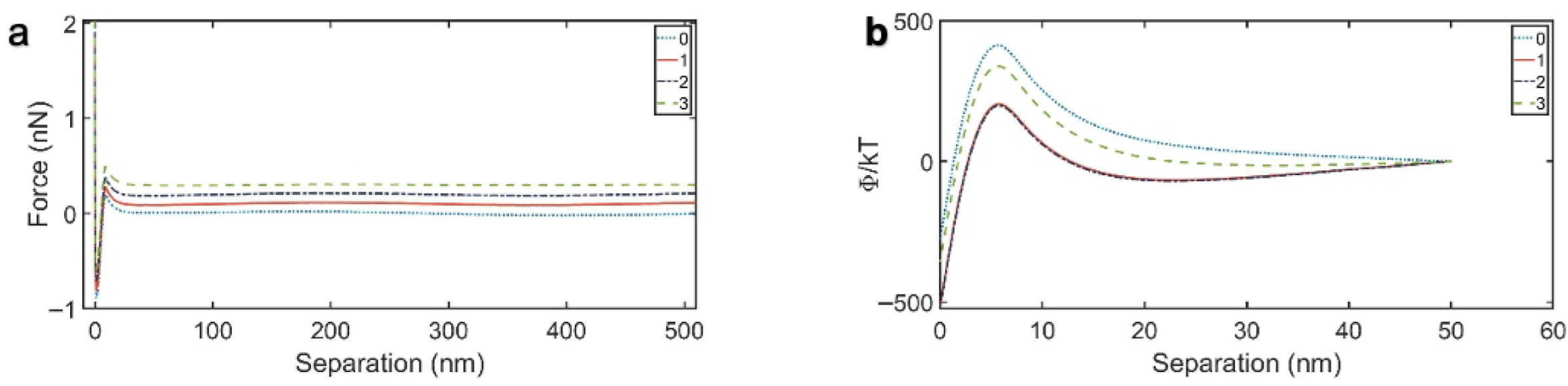 3.3. Going from Fundamental Force Curves to Sticking Efficiencies