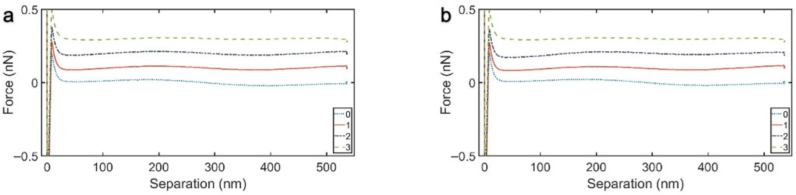 3.4. Assessing the Assumptions Used to Make the Average Force Curves