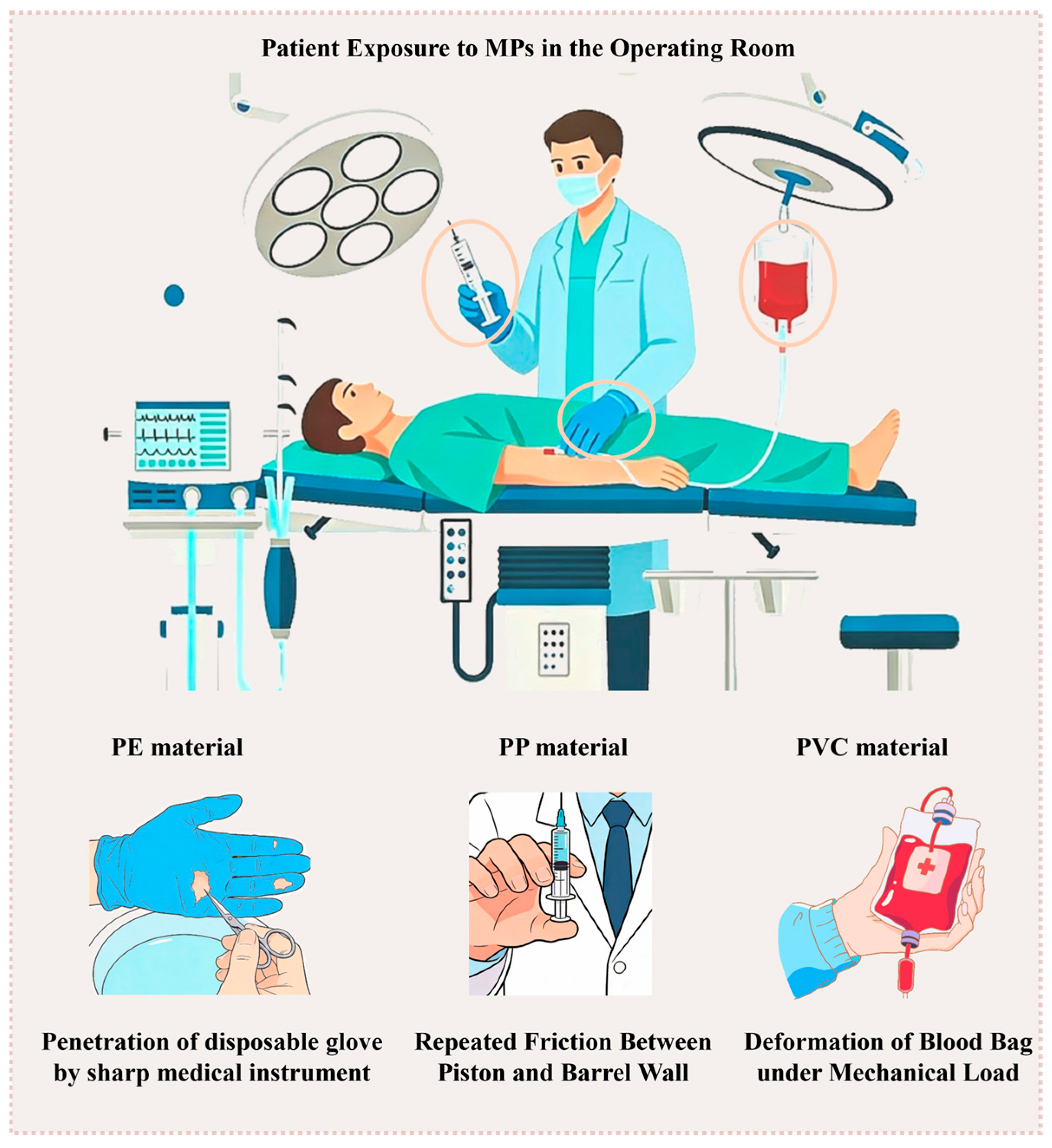 - Huang, T.; Liu, Y.; Wang, L.; Ruan, X.; Ge, Q.; Ma, M.; Wang, W.; You, W.; Zhang, L.; Valev, V.K.; et al. MPs Entering Human Circulation through Infusions: A Significant Pathway and Health Concern. Environ. Health 2025, 3, 551–559. [Google Scholar] [CrossRef] [PubMed]