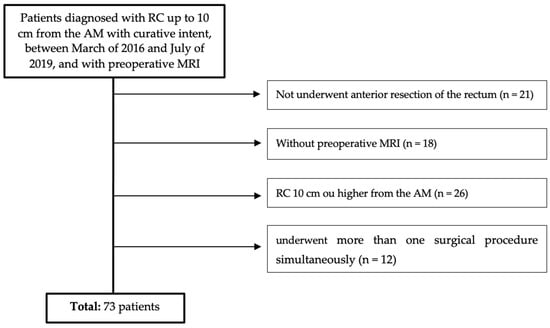 An observational, analytic, retrospective and descriptive study was conducted. This study used a non-random convenience sample, and several inclusion and exclusion criteria were applied. The target population consisted of the patients submitted to anterior resection for RC, performed in Braga’s Hospital, between March 2016 and July 2019.