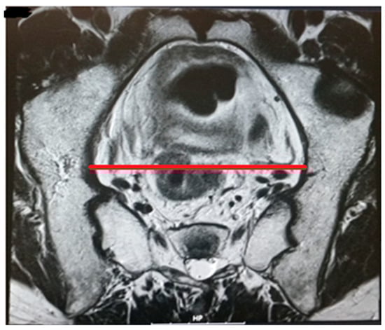 The pelvic measurements on MRI (Figure 2, Figure 3, Figure 4, Figure 5, Figure 6 and Figure 7) were carried out by the author, and to maintain the reproducibility of the results, measurements were taken, whenever possible, at the same anatomical levels.