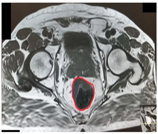 Tumor staging is one of the most decisive steps for the prognosis and correct therapeutic planning of patients with CRC, with some particularities in RC. The staging system used is the American Joint Committee on Cancer (AJCC) TNM, which describes the tumor in relation to its size and the invasion of surrounding structures (T), the number of invaded lymph nodes (N), and the presence or absence of metastases (M) []. Currently, staging in RC is performed using Magnetic Resonance Imaging (MRI), which allows a more precise characterization of the relationship between the mesorectal fascia and the tumor margin [,].