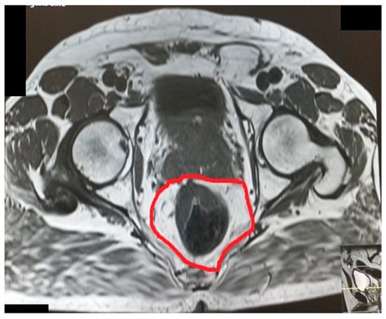 Because the pelvic cavity is a potentially narrow structure, with little space for the surgical technique and the surgeon’s visualization, this type of procedure is more difficult [,]. This is particularly true in low rectal tumor resection surgeries []. In addition to a narrow pelvis, which is visualized by MRI, a high Body Mass Index (BMI), greater proximity of the tumor to the anal margin (AM), the presence of preoperative treatment and tumor staging are other factors that add difficulty [,,].