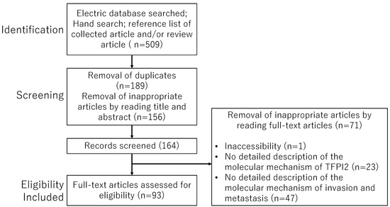 - Sato, N.; Parker, A.R.; Fukushima, N.; Miyagi, Y.; Iacobuzio-Donahue, C.A.; Eshleman, J.R.; Goggins, M. Epigenetic inactivation of TFPI-2 as a common mechanism associated with growth and invasion of pancreatic ductal adenocarcinoma. Oncogene 2005, 24, 850–858. [Google Scholar] [CrossRef]