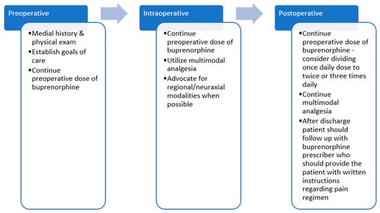 - Li, A.H.; Schmiesing, C.; Aggarwal, A.K. Evidence for Continuing Buprenorphine in the Perioperative Period. Clin. J. Pain 2020, 36, 764–774. [Google Scholar] [CrossRef] [PubMed]