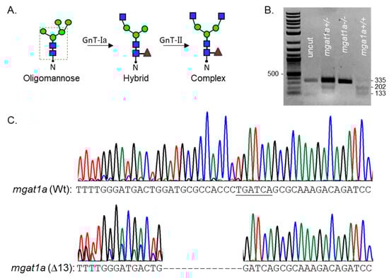 13]. Since zebrafish have two GnT-I enzymes (GnT-Ia/b), unlike mice and humans, the study proved advantageous since the inactivation of
