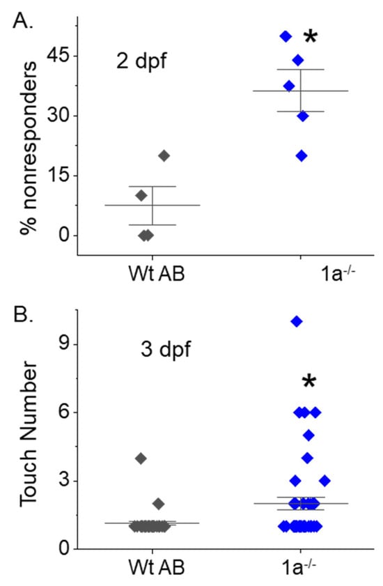 mgat1a embryos (2 dpf) lacking response to touch was quite similar, while the number of non-responders among the