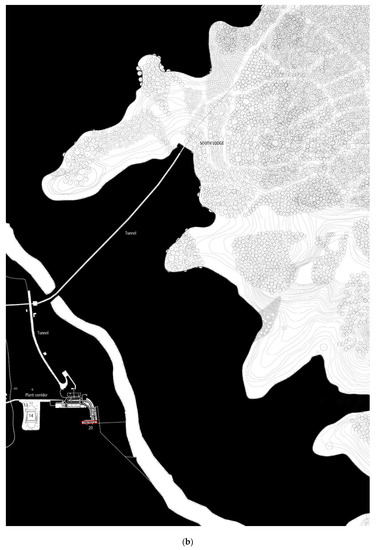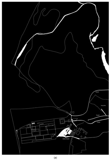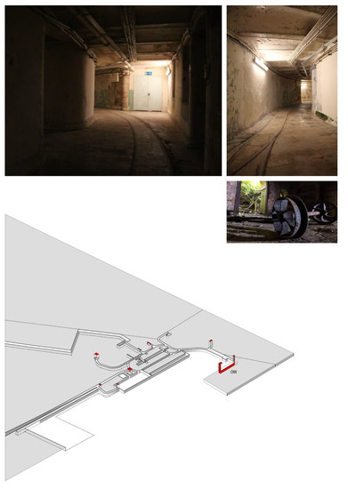 The ground is full of other lines, small remnants, tunnels, as well as shortcuts and detours that connect and articulate the tunnels, weaving an extensive network under the estate’s surface (Figure 9). A grotto tunnel, carved profusely into the stone, makes it possible to move under one of the roads that divides the park, while another emerges with a ramp below the Riding School. There are many which preserve the narrow gauge, and others of rectangular section and slender proportions, decorated with paintings and antlers, lead to subterranean spaces that are breathtaking due to their size and beauty. Dozens of passages dispersed throughout the territory create a kind of rhizome that expands underground; some have already been swallowed up and closed off by nature itself, while others are conserved in a difficultly reversed state, patiently awaiting a new future.
