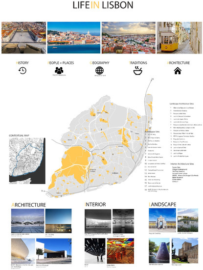 Drawings, photography, and digital technology are essential to establishing the iconic status of buildings, interiors, or landscapes [16]. The drastic lockdown responses to COVID-19 and the limitations on local and international travel eliminated the field trip/excursion/site visit as a learning opportunity and highlighted the importance of the visual. However, these images are anything but ‘present’, ‘corporeal’, or three-dimensional (that is, ‘iconic’ in the word’s original sense). Instead, they borrow their iconicity from their ability to multiply infinitely while at the same time retaining their memorability [17]. The power of the image in producing iconicity affects how people give credence to the building and landscapes and, in some cases, the architects they represent. Iconicity works and persists since the buildings, interiors, and landscapes express both symbolic and aesthetic values.