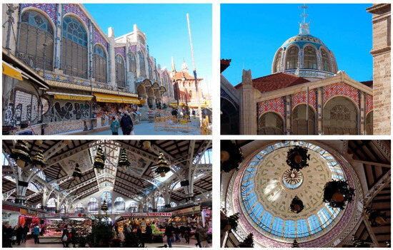 - Arazo, M.A.; Jarque, F. Mercado de Valencia; Ayuntamiento de Valencia: Valencia, Spain, 1984. [Google Scholar]