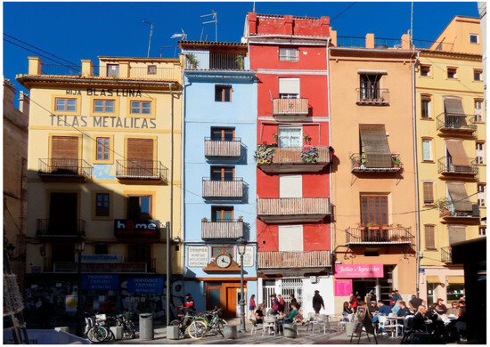- Simó, T.; Teixidor, M.J. La Vivienda y la Calle. La Calle Cavallers de Valencia Como Ejemplo de Desarrollo Urbano; Ediciones Alfonso el Magnánimo: Valencia, Spain, 1996. [Google Scholar]
