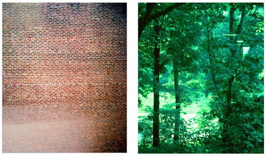 This finding could also modify interpretations of Roger Ulrich’s influential experiment comparing the recovery of hospital patients with a natural or built view [21]. The built view was of a brick wall roughly forty feet away from the patient’s window, while the natural view was significantly deeper, actually through a stand of trees (Figure 7 and Figure 8). The presence of nature may not have been the only factor that played a role in the faster recovery rates of those looking through the trees, then. The brick wall presented patients with nowhere to go mentally, while the mind was free to wander through the trees to the wider world beyond.