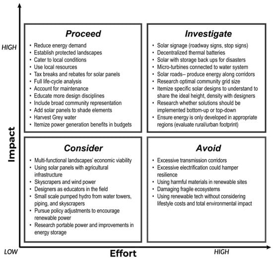 Consequently, a distinctive collection of co-created ideas for future exploration has been formulated, providing deeper insights into the potential role that landscape architects may play. The conclusions drawn from our literature review and the co-creation process during the SRVW have provided valuable insights into the design process of renewable energy development in the Southwest. The SRVW highlighted the success of the Green Stormwater Infrastructure movement as an example of how landscape architects can add value, engage communities, and change public perceptions of renewable and climate-sensitive projects [,]. With their understanding of ideal site locations and the ability to co-create spaces with the community, landscape architects can ensure that new energy interventions align with the six pathways and deliver benefits for all stakeholders.