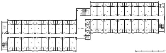 Linear typical standard block floor plan. Source: Hong Kong Housing Authority. Available online: https://www.housingauthority.gov.hk (accessed on 5 December 2023) [26].