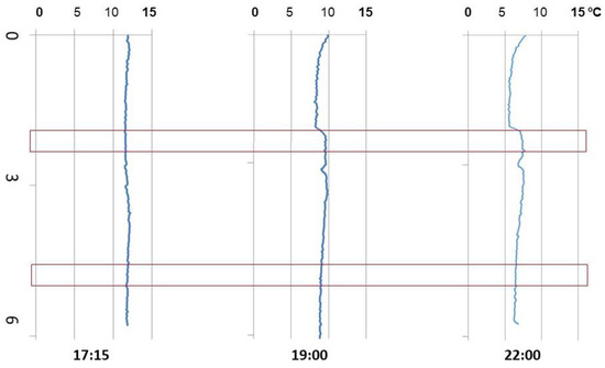 After sunset, the temperature gradient stabilized around 2 °C. The air lock that occurred under the louvres and its consequent limited convection effect is noteworthy; even at 22:15 h, an increase in temperature of up to 5 °C can be observed in the façade’s ledges. Indoor temperature stratification was discarded due to the high thermal resistance of the wall after retrofit (U = 0.29 W/m2.K); neither of their thermal bridges linked to the window area because of its continuity along the façade.