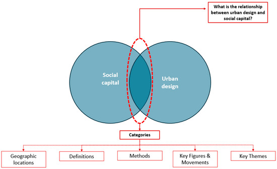 What was apparent in undertaking this study was the difficulty around conceptualising what this relationship looks like due to the complexity of both terms themselves as well as the complexity of defining this relationship itself. In many languages, there are words that cover an experience or phenomenon, such as weltanschauung in German, meaning someone’s world view [72], or raison d’être in French, meaning a person’s reason for living [73]. As there is no word or phrase that defines the intersection of urban design and social capital and the relationship between them, research on this topic is difficult to navigate. Hence, the value of this study was to focus on breaking down the definitions and methods used, key figures, movements, and themes surrounding this topic. It was identified as contributing to dialogue on this complex and evolving relationship.