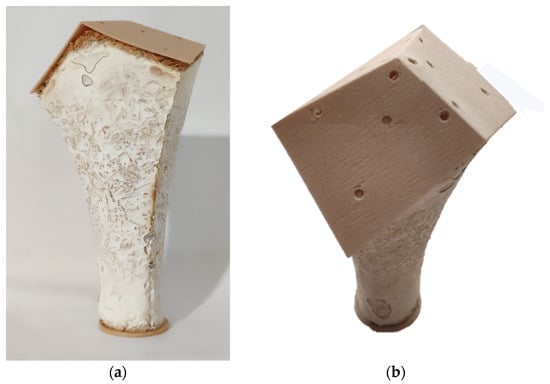 The filament proposed in this study falls under bioplastics, which are derived from biodegradable materials and renewable sources like potato starch, coffee beans, and biowaste [27]. This category represents an experimental stage, and the existing literature on it is still relatively limited. As a result, the molds have multiple roles. Apart from defining the shapes of the pieces, they also provide the fungus with the substances necessary for its growth, are integrated into the construction, and enhance the resistance of the final material to mechanical stress.