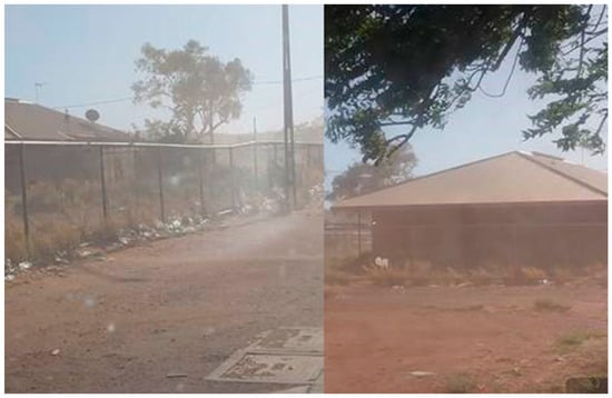 Health impacts can result from dust-borne animal faeces and other bacteria on roofs which are later washed into rainwater tanks, and from dust damage to health hardware including reduction of the efficiency of solar panels for water heating due to dust films, and the failure of washing machines due to dust build-up within moving components [56]. A serious omission in this Guide, however, is the air-borne transmission of bacteria and irritating particles causing eye health problems including trachoma, a major cause of preventable blindness that remains active in some Indigenous communities in remote Australia but is kept under control through a consistent public health program [57]. Functioning health hardware to keep the face clean is critical to the program. Another omission is recommendations for the design of walls, roofs, windows, and doors to minimise dust penetration. This set of design techniques requires expert practice input [56].