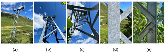 In assessing the condition of the reused steel trusses, an initial visual inspection was conducted to evaluate both the general state of the elements and the integrity of the galvanization. Special attention was paid to the welded joints between the anchoring plates and corner profiles, as these were identified as the critical components. While the visual assessment revealed no visible damage or deterioration. The operational history of the ski lift, which functioned for approximately 13 years with seasonal and limited daily use, suggests that the impact of cyclic loading is minimal. Following the guidelines from the Stahlbau Zentrum Schweiz, specifically the Steelaid Re-Use classification, the steel trusses are categorized under reuse class C-A [51]. To confirm this classification, material testing, including a 1:1 mockup, will be carried out in a subsequent phase to evaluate the fatigue strength of the welds and identify any potential signs of degradation.