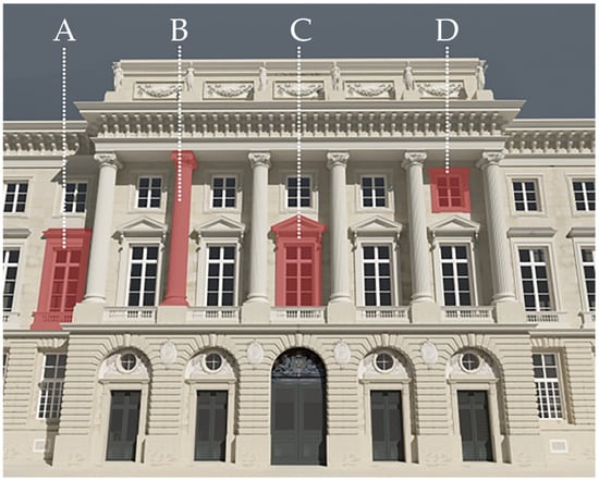 Coding of data whose results are combined. (A) window with balustraded balconette, (B) ionic column, (C) door with pointed pediment, and (D) window with shouldered surround (Balafoutis, 2020).