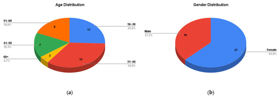 Figure 2b), stating their keen interest in the circular economy transition in the building sector. The female predominance might reflect their significantly growing involvement in sustainability-related roles in the building sector. This, in turn, could provide a unique angle on fostering a more inclusive environment and approach while encouraging participation and enhancing community impact, social sustainability, and communicative and collaborative actions to drive the effective implementation of the circular economy in the building sector [