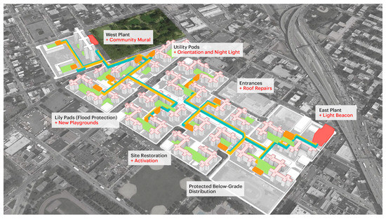 - NYCHA Red Hook Houses: Sandy Resiliency & Renewal Program. KPF. Available online: https://www.kpf.com/project/nycha-red-hook-houses (accessed on 28 January 2025).