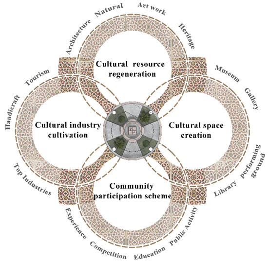 Culture-led regeneration emerged as a distinctive and increasingly influential model in this context. Cities began to utilize their cultural and historical identities to preserve heritage and promote local economic development and social inclusion [6,10]. This model situates cultural identity at the heart of planning, encouraging storytelling, memory preservation, and creative industries to revitalize declining neighborhoods. Culture-led regeneration allows cities with historical depth and creative capital to pursue adapted strategies that foster pride, attract tourism, and create sustainable livelihoods. It offers a dynamic fusion of modern urban needs, such as housing, accessibility, and infrastructure, with community-based narratives and spatial heritage [11]. Through these approaches, cities aim to stimulate job creation, increase income levels, and promote environmental sustainability while reinforcing their symbolic and cultural significance [12,13].