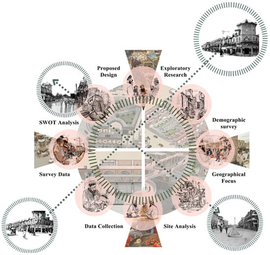 As an exploratory study, this research investigates aspects of culture-led urban regeneration that remain underexplored, particularly in the context of Quetta’s Meezan Chowk. Exploratory research is beneficial for examining broad or poorly defined problems, as it allows for flexibility in approach and openness to unexpected findings. It provides a foundation for identifying new variables and understanding complex phenomena, and formulating more specific research questions [21,22]. This method enables a deeper investigation into culture-led urban regeneration.