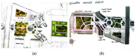 (a) Initial process sketches and (b) underpass, roundabout sketches.