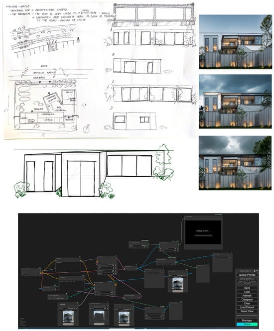 Ethical review and approval were waived for this study due to the fact that the nature of the study did not involve sensitive personal data or interventions. What is shown is a screenshot of a program (ComfyUI) while they were through the process of using it, therefore, no personal data whatsoever was used during this process. Additionally, all student participants were informed that their design work and participation in the study could be used for academic publication. Consent from them was obtained prior to the inclusion of their work, and participation was entirely voluntary. No personally identifiable information has been published.