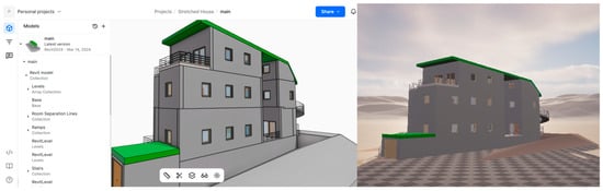 The models were derived from various BIM software, including IFC, Revit, and SketchUp, reflecting the diversity of data sources. The level of detail varies depending on the original file format and software. The Revit model (User 5) exhibited the highest level of detail, showcasing comprehensive BIM data such as material properties, dimensions, and object classification. In contrast, the SketchUp model (User 7) displayed the lowest level of detail, with minimal attribute information. The IFC model (User 4) demonstrated a moderate level of detail, primarily representing geometric elements with limited metadata.