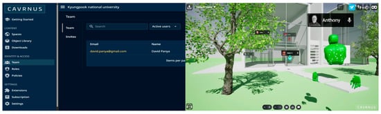 The collaborative process begins with uploading BIM models into the VW platform, where multiple users can simultaneously interact with the design and dataset. Participants can collaboratively edit models, annotate design elements, and store modifications directly in the cloud. These actions synchronize automatically with the CDE, maintaining data integrity and ensuring that all stakeholders work from the latest version of the project. Visual communication is facilitated through avatars, providing an immersive and engaging medium for real-time interaction in the virtual space as seen in Figure 5. This workflow bridges the gap between digital collaboration and physical project management, aligning immersive environments with construction industry requirements.