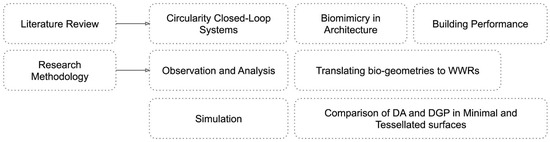 BioProtopia takes a different approach and reviews self-growing materials and crafting bio-tech materials at micro- and macroscales [11]. Such studies provide a detailed design approach based on biomimicry, while a “comparative” investigation is missing in the daylighting literature. Figure 1 provides an overview of the literature and methodology in this article. The reviewed precedents illustrate valuable design methods in response to climate change, where implementing such methods along with the efficiency of a closed-loop system leads to a responsible decision. The following question concludes this discussion with an open-ended anecdote: How does contemporary architecture and pedagogy address bio-inspired solutions for climate change?