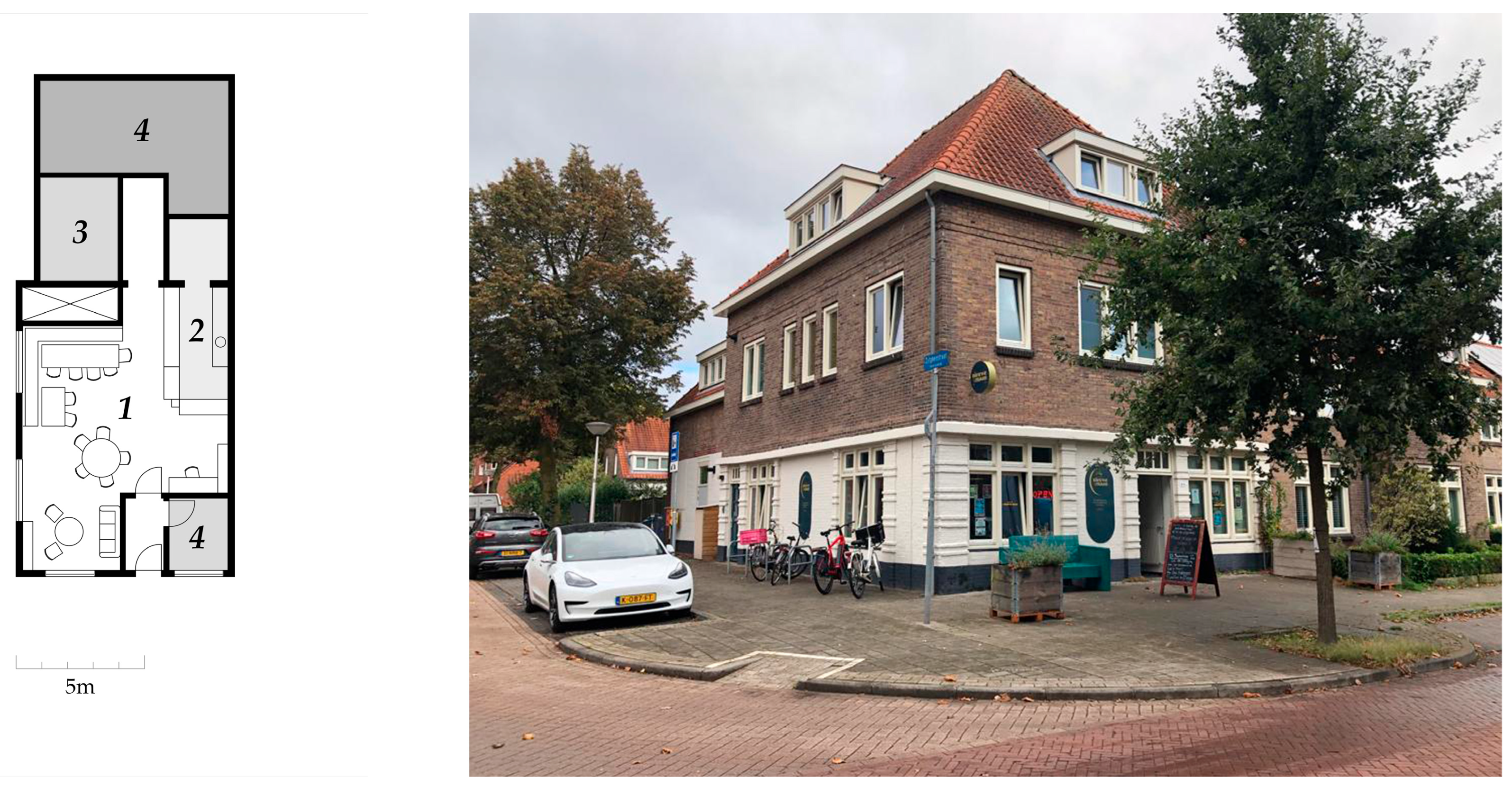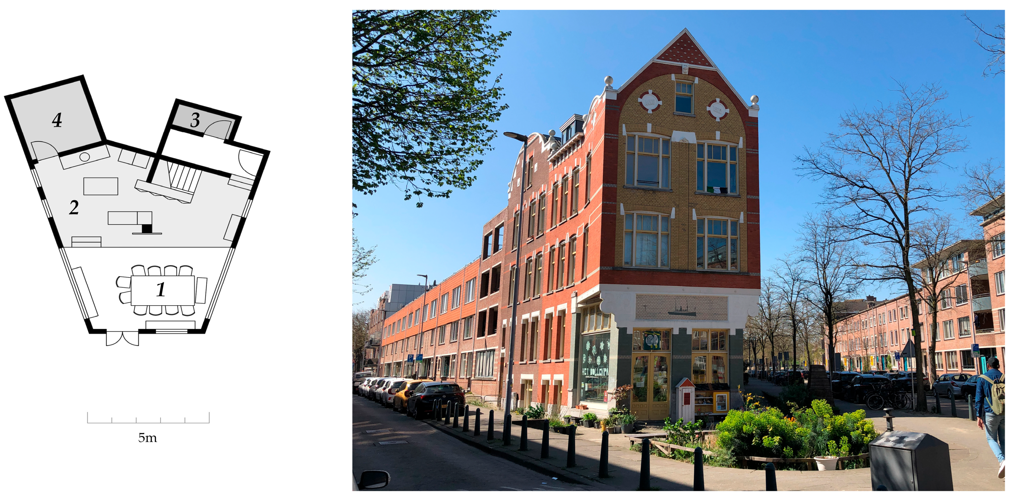 | Space | Former commercial space in ground-floor corner of a terraced housing block | Pavilion building formerly used as special needs youth center | Vacant former commercial space in ground-floor corner of social housing apartment block | Vacant former commercial space in ground-floor corner of a terraced housing block |