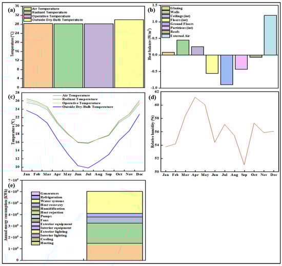 The analysis presented in Figure 3a for the monthly average temperature from 2018 to 2023 [44] indicates that the maximum temperature observed was above 28 °C, while the minimum temperature was 18 °C, with no significant difference among these five years despite variations in monthly temperatures over this period. However, climate change is causing elevated temperatures and prolonged dry seasons, which in turn is increasing the demand for energy-intensive cooling systems. Therefore, buildings must be designed to support both warm and cold climates, necessitating features that improve thermal comfort while reducing energy usage [99].