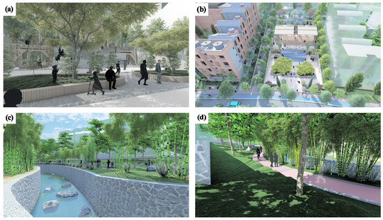 The design of the courtyard spaces in the housing of Akabahizi village typically reflects a communal, multifunctional approach and the informal nature of the area [39]. Many homes in Akabahizi village have courtyards arranged in central formation and serve as communal spaces for social interactions. Most of these courtyards act as the heart of the community and foster a sense of cooperation among residents [40]. The pathways connecting individual residences to the courtyard are informal, constructed from temporary materials, and lack standardization, with many varying in width and condition [41]. Overcrowded spaces characterize the courtyards of the housing in Akabahizi village because of the high population density in the area, which limits their effectiveness as communal spaces and causes an increase in space-use conflicts [41,42]. Ultimately, the overcrowding of the courtyards has led to a lack of green spaces and the development of an urban heat island effect in this region, along with associated problems [36]. The poor arrangement of Akabahizi courtyards resulting from unplanned development contributes to numerous challenges, including the community’s vulnerability to climate change and poor living conditions [43]. Therefore, there is a need to upgrade these settlements by focusing on integrating GB strategies in Akabahizi village, enhancing access to services, and promoting sustainable practices to improve living conditions for local communities [2].