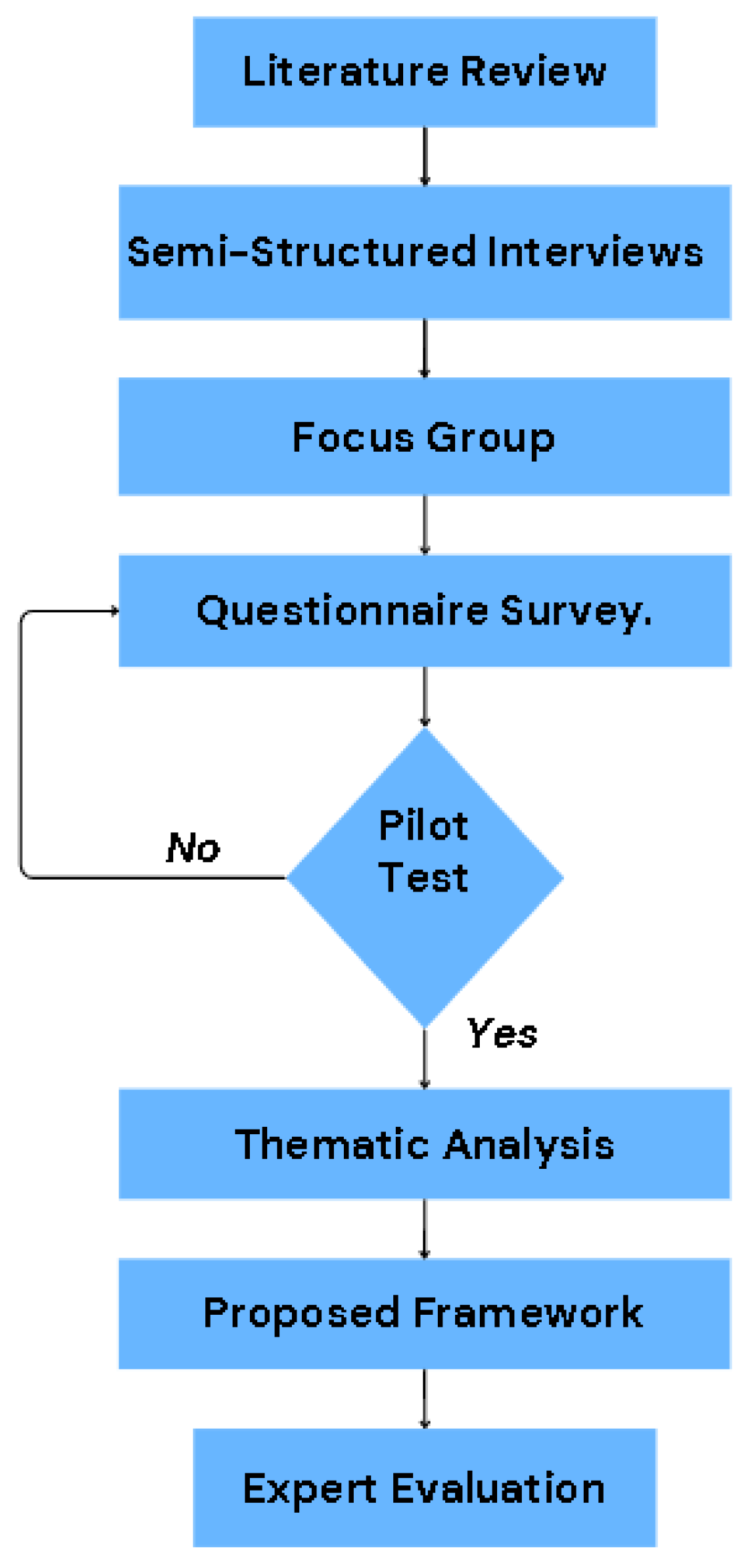 64]. Therefore, this study adopts a design-led approach to innovation, synthesizing global sustainable design principles with local requirements to develop a framework that is both theoretically grounded and practically applicable. The study employs a multi-method research approach, incorporating qualitative and quantitative methods to examine the current state of sustainable design and IEQ in Jordan. The methodology includes a comprehensive literature review, expert interviews, focus group discussions with government architects, and a questionnaire survey targeting residential occupants. The data collected through these methods were analyzed thematically to identify key challenges, gaps, and opportunities for sustainable IEQ enhancement. The proposed framework was further validated by experts to ensure its applicability within Jordan’s socio-economic and environmental context. Ultimately, this research contributes to the development of a practical, context-specific strategy for achieving improved IEQ in residential buildings while promoting sustainable design practices.