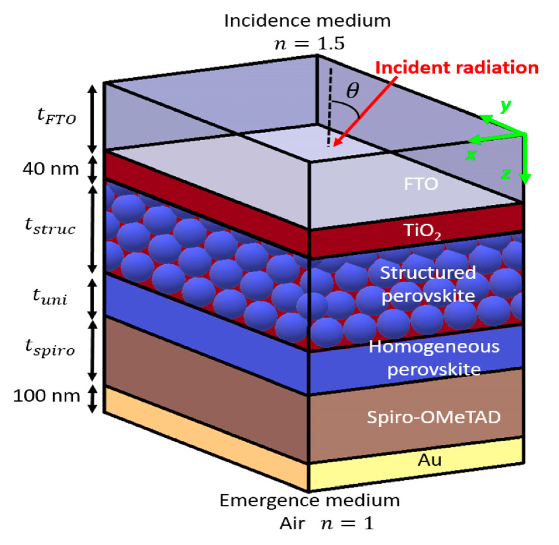 Perovskite solar cells (PSCs) are a newly emerging family of photovoltaic devices (as shown in Figure 14) composed of organic–inorganic hybrid perovskite compounds, typically with the general formula ABX3 (where A = cation, B = metal, X = halide) [110].