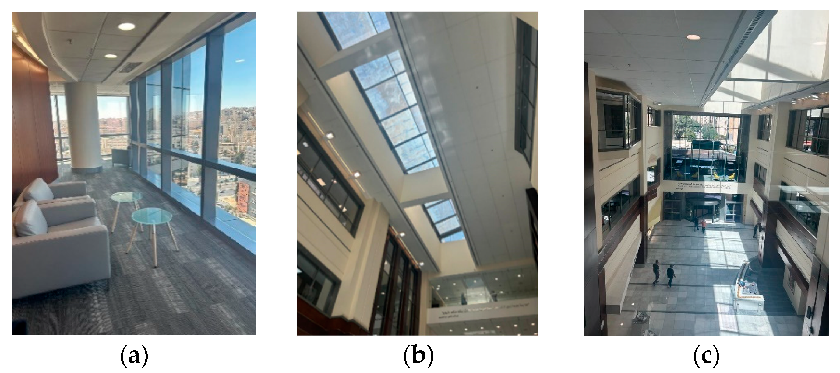 - Ismaeil, E.M.; Sobaih, A.E.E. Enhancing healing environment and sustainable finishing materials in healthcare buildings. Buildings 2022, 12, 1676. [Google Scholar] [CrossRef]