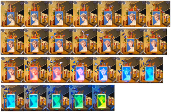 In the current work, virtual and augmented reality are proposed as therapeutic add-ons to the architectural space, offering a virtual extension or alteration of the space´s characteristics. These alterations can be designed according to the biophilic design principles, as mentioned in the Section 1, as there is a proven favorable influence of biophilic design on stress relief and enhancing overall well-being, or by employing stress-relief color palettes with infinite iterations to offer a varying experience in the space.