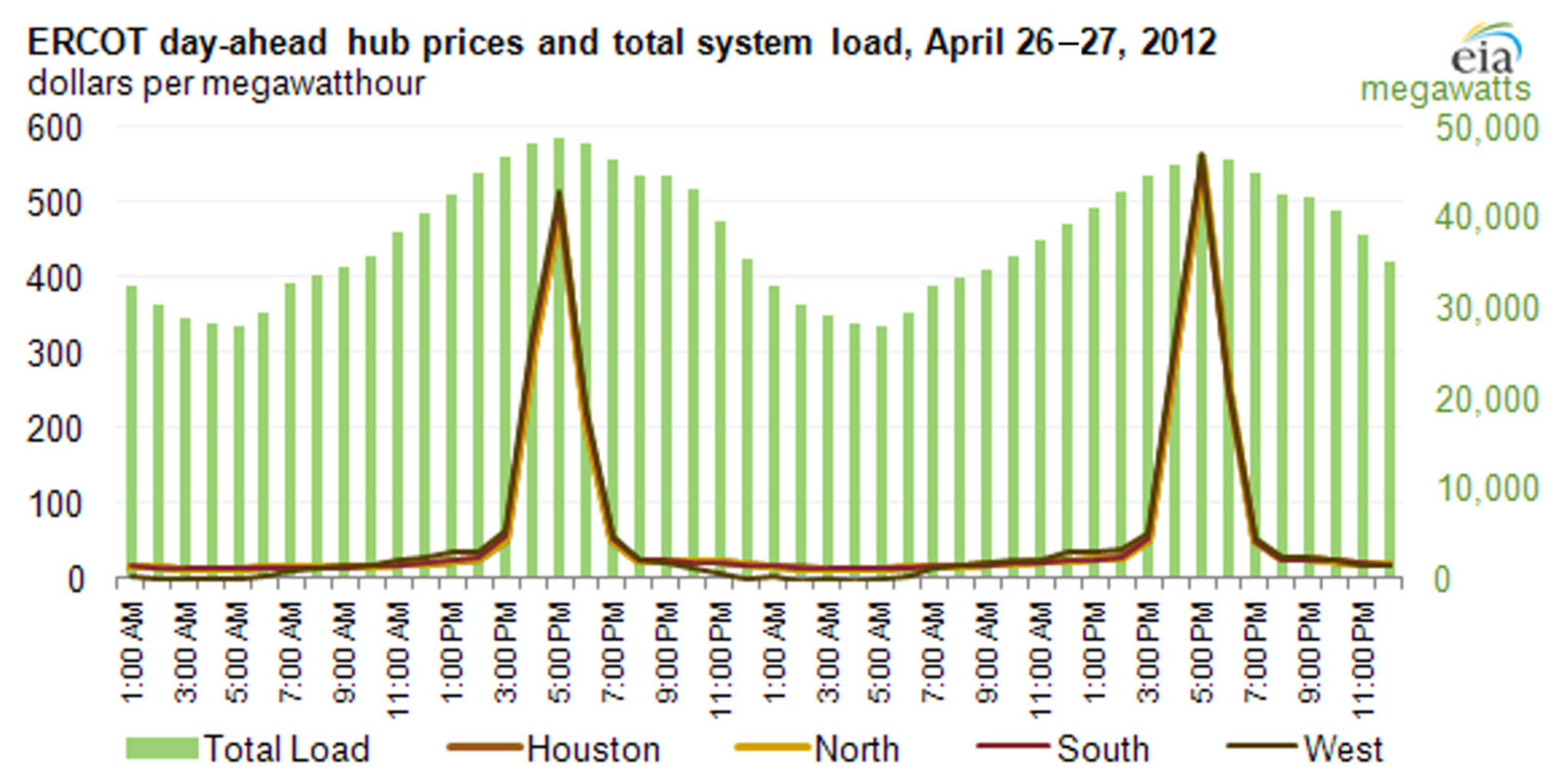 An example of the differentiated price during peak time: wholesale electricity prices spike in Texas [33].