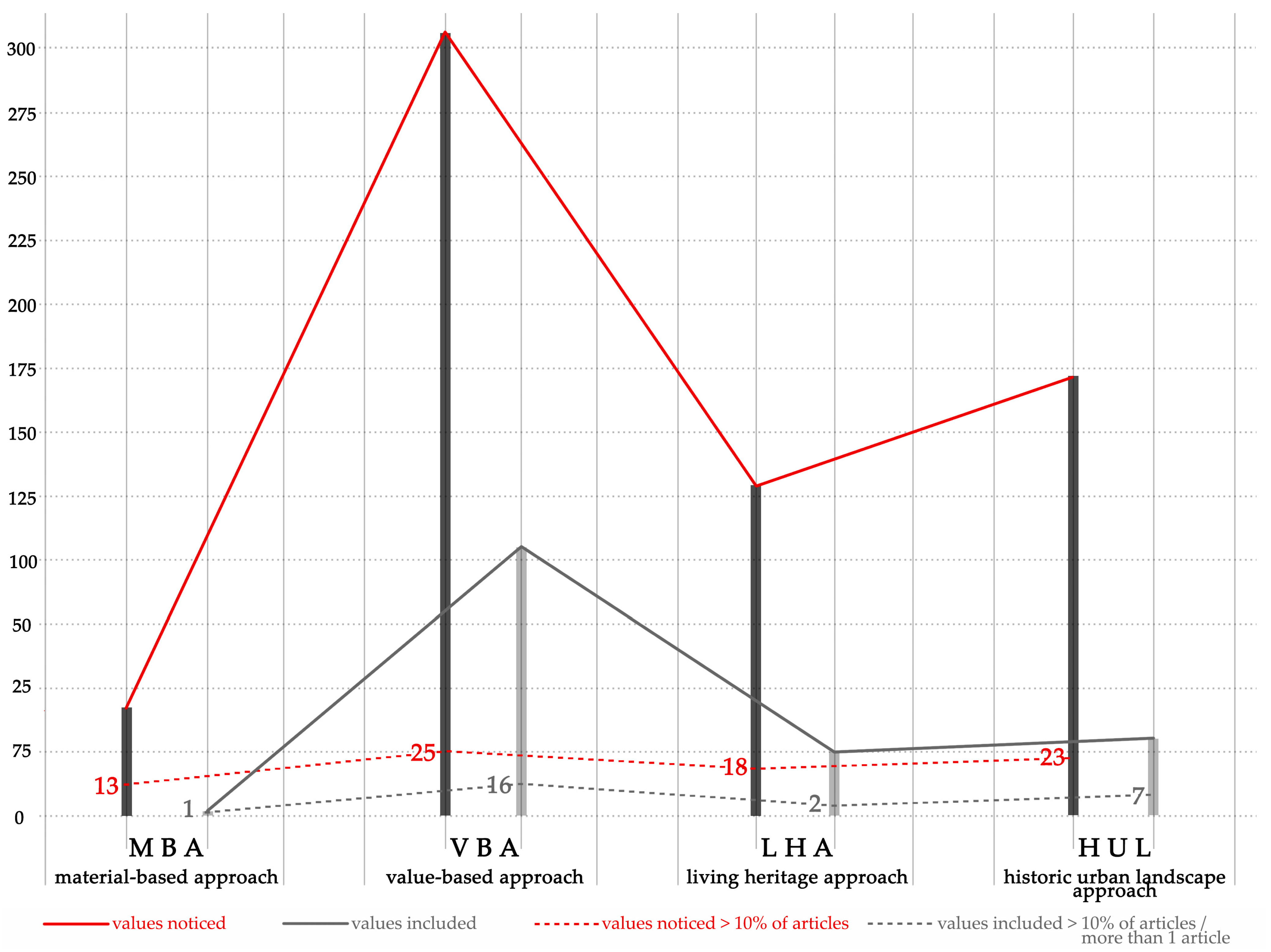 - RQ1. Which value types are recognised within academic research applying the four main approaches to cultural heritage preservation, and how does their representation vary across approaches?